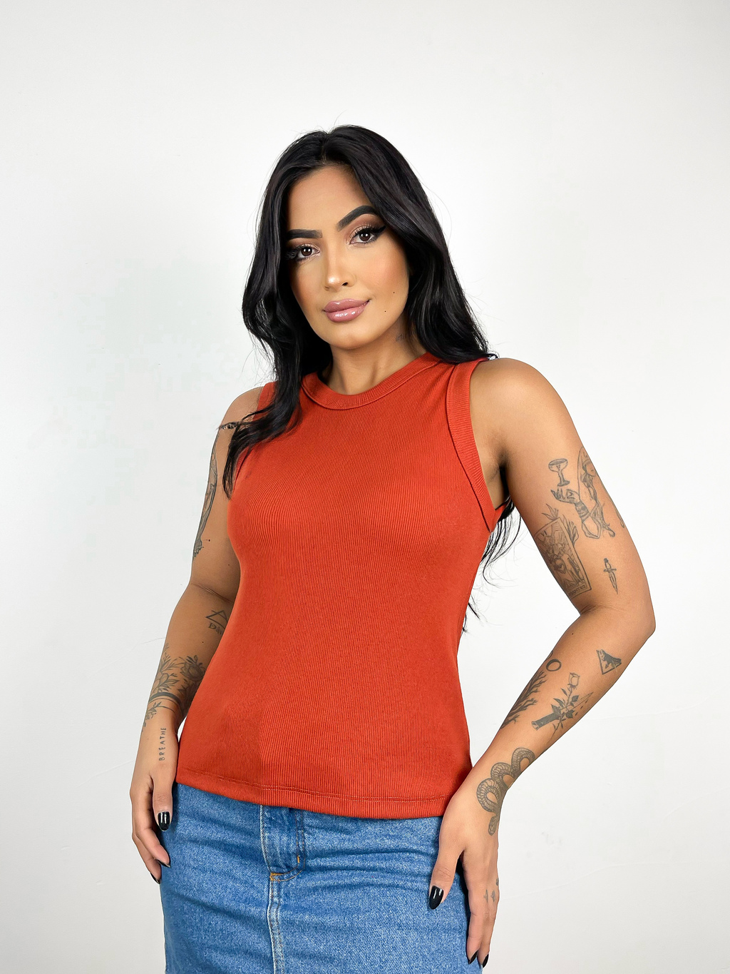 Feita em algodão de alta qualidade, essa regata é tão versátil que vai do parque ao happy hour, sem perder a pose! E o melhor? Seu tom telha é tão único que até suas amigas vão querer saber onde você comprou!